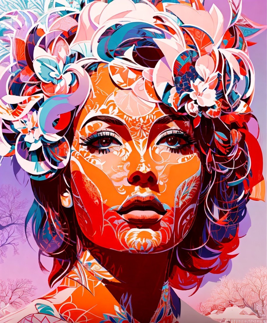 Fauvisticcuts, foldedpaperstyle1.6, raytracedshadows, Filigreedwiththefineststrokes, encausticlines, grain, blurryaura, tints of linocut and 1970s book cover art, intricate details of instaport style 1.6, brightness 1.9, vector 8:5, beautiful composition 1.9