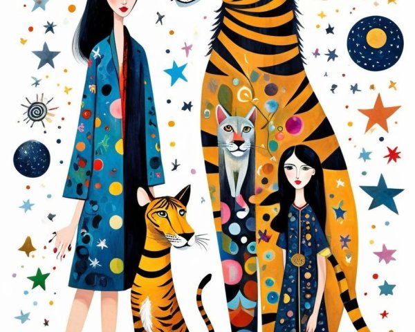 More about Vibrant Women and Peacock in Artistic Scene