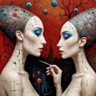 The artwork features two elegantly styled women facing each other, framed by intricate spider webs. Their striking makeup and delicate hairstyles enhance the mysterious, haunting atmosphere.