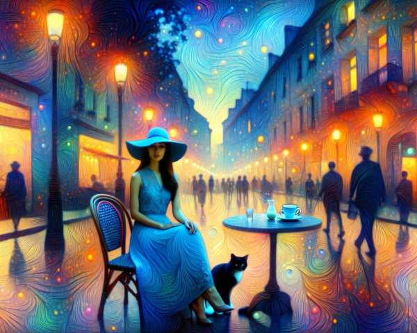 A fantastical image of a woman with vibrant red butterfly wings, dressed in a black dress with red accents, against a moonlit backdrop.