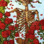 Skeletal Figure Surrounded by Roses in Serene Setting