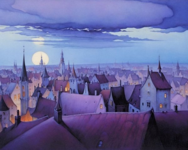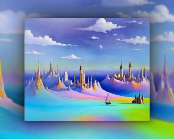 A fantastical steampunk cityscape features intricate buildings with towers and spires, stylish steam-powered vehicles, and a dynamic sky, blending whimsy and nostalgia in a unique atmosphere.