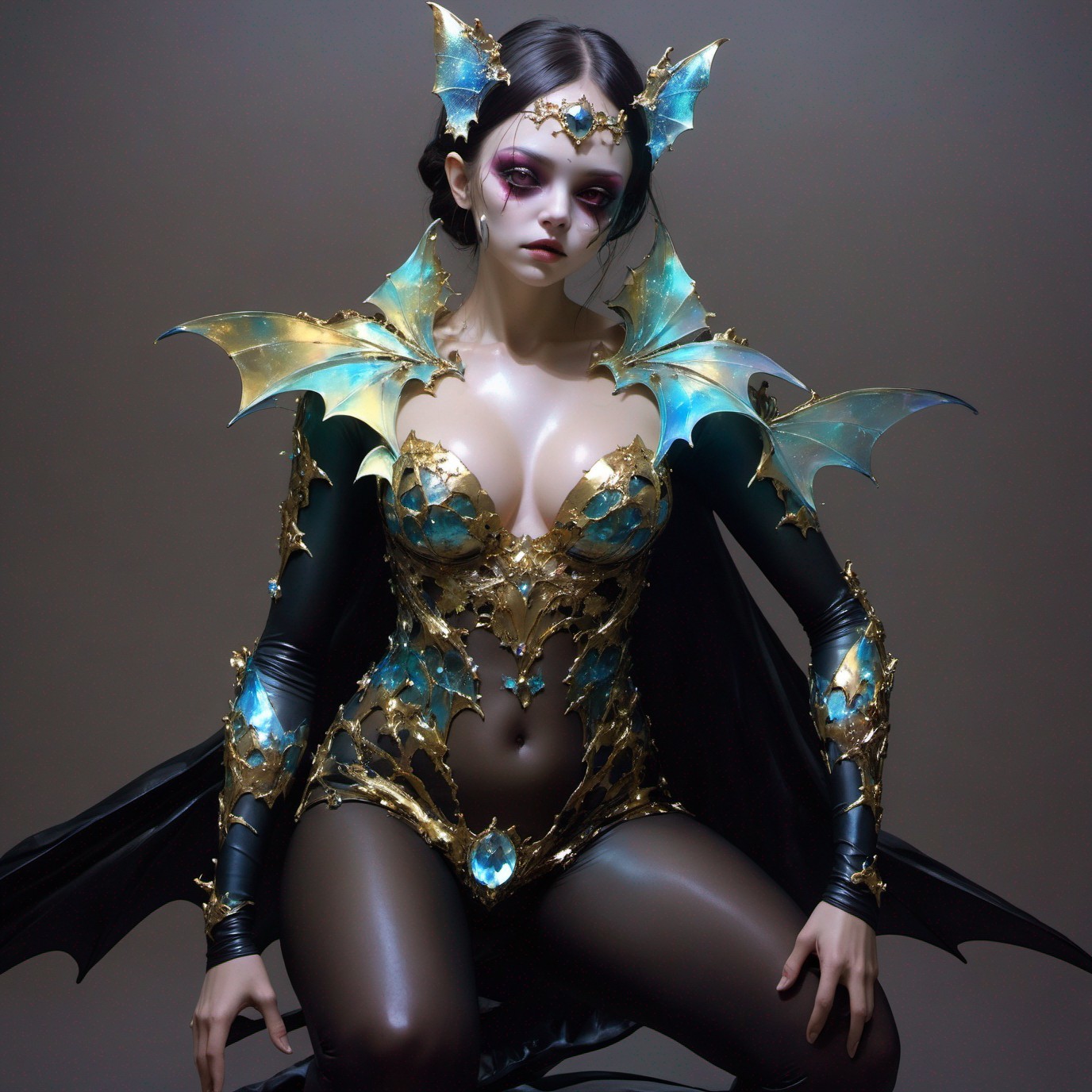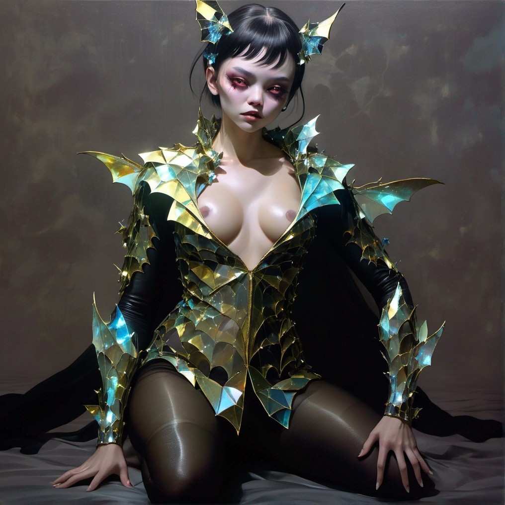 + Prompt:Arlequín máscara ,cristal Horror Beauty: bat full body!!! inspired by Carne Griffiths, Terry Gilliam, concept art Dan Witz fantasy skies love mystical Van Gogh; illustrative, atmospheric, ethereal, evocative, elegant, optimistic, noctilucent, organic, meticulous polished graceful light being, beautiful composition