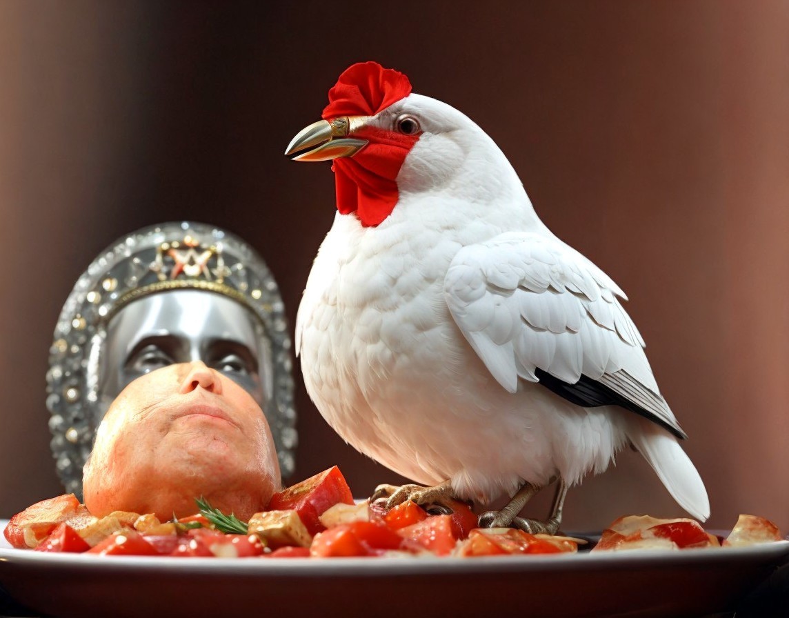 Surreal skull and butterfly in desolate landscape with bleeding structures