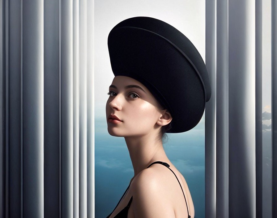 151515;[In the style of Rene Magritte, a surreal artwork depicts a young woman seen from above, evoking a dreamlike perspective. Exaggerated features and floating in an abstract space. Intricate lines, monochromatic color scheme, creating a mysterious atmosphere. Highly detailed, surrealistic ambiance]