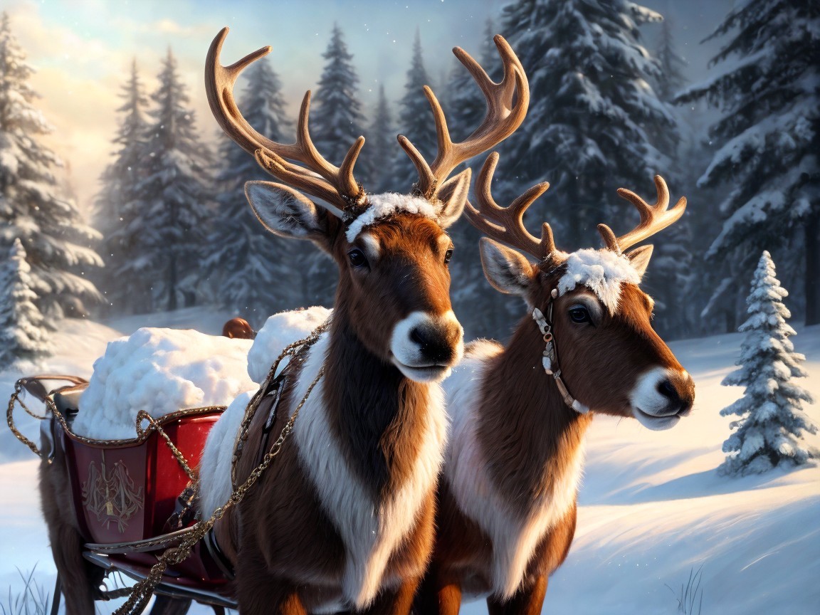 These Reindeer was caught in a quick Snow Storm that covered there cart in snow