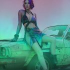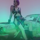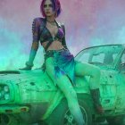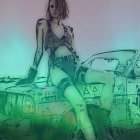 Movie still akin to Mad-Max-series, line-art, sideview portrait with chiseled facial features & multi-layered eyes, punk rock boots, hues by Ho Baron, color glitch patchwork features, disintegration, gradient inking, contoured inkpunk, stippled textures, novelty architecture, decorative, graphic novel art remniscence, dyed, spiritual surrealism, mad max vibes, spectacular, fractured displacement mapping 1.2, ambient occlusion 1.3, parallax occlusion 1.3, fantasy iconography, dystopian, decay, retropunk, cel-shaded, sculpted, retrofuturistic ,soft bluish gradient inking tones, highly detailed, fluid, watercolor details, dark and mysterious ambiance, surreal elements, intense and vivid colors, intricate linework, occult, visionary art iconography, cryptic raytraced shadows, high contrasts, foreboding and unea, divisionism, triadic color scheme on complementary colors, background, uhd, hdr, dof, debeh, bokeh, brightness 1.3, subsurface scattering 1.5, alt-cinema movie still merged with Jamie Heiden's assemblage art, fractured linework, otherworldly, detailed, dark & magical realism, designed patchwork and sawtooth wave, Negative Lucas numbers, Digital topology, LiDAR point cloud, 128K,,hyper-realistic symmetrical chiseled facial features, depicted, textured glossy shimmering effects, metallic colors for a foreboding touch inspired by Esao Andrews' biomorphic hallucinatory artworks, multi-layered eyes, stylized hairdo, post-avantgarde style, fine-line illustration reminiscent of bricolage,