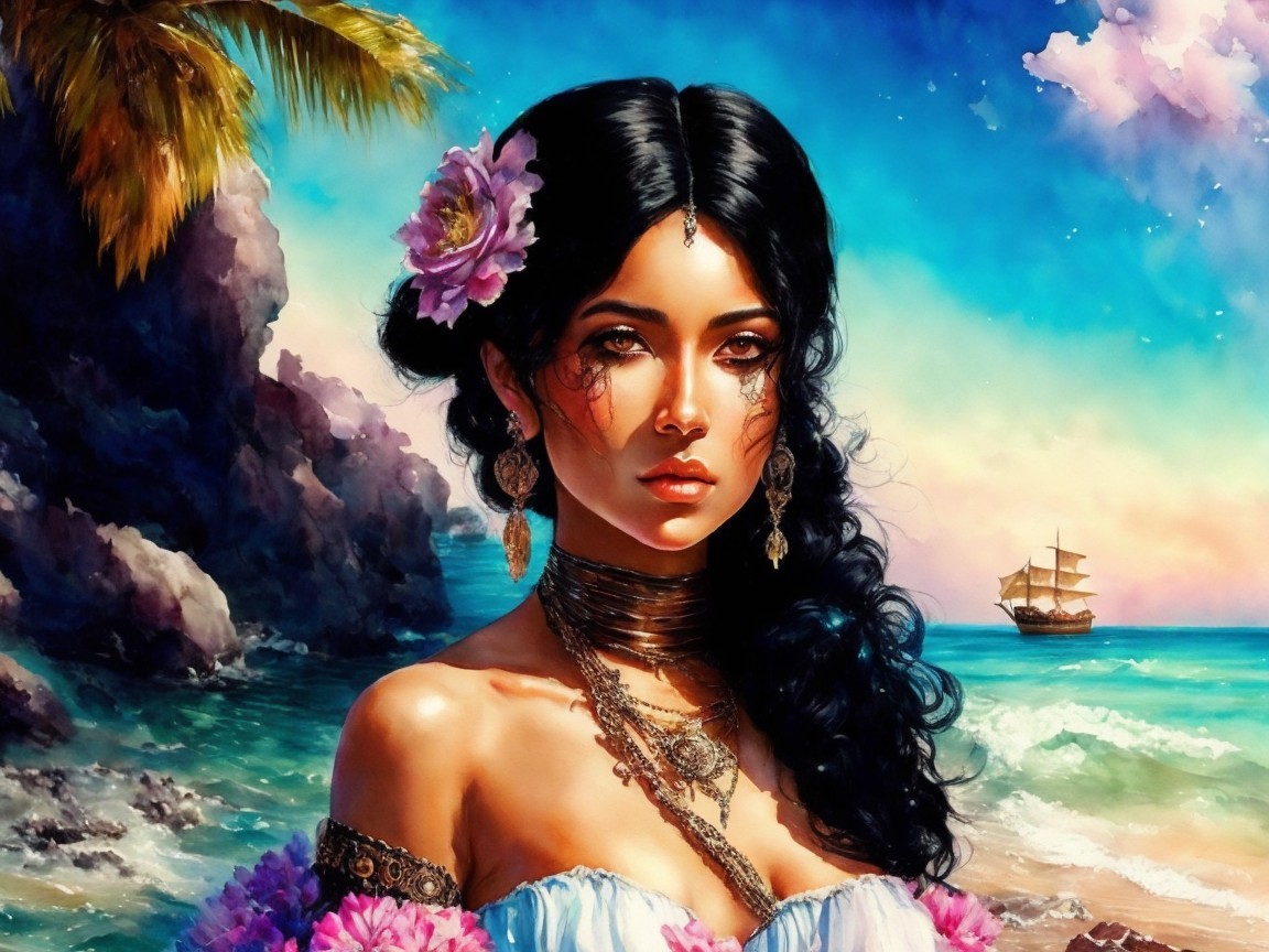 This pretty looking maiden is a ruthless pirate she co captains her long time pirate love