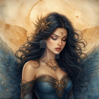 Fantasy Portrait of a Woman with Golden Wings