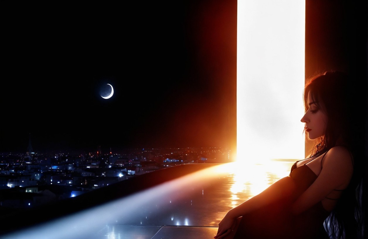 Prompt: won't you disappear into midnight again, i feel my spirit, I kiss the world goodbye, nights with the city lights, sweet elusive fate will be our company, bring out the vamp in me, only after dark, moon sinful as can be, is it wrong to feel so free, only you do it to me
