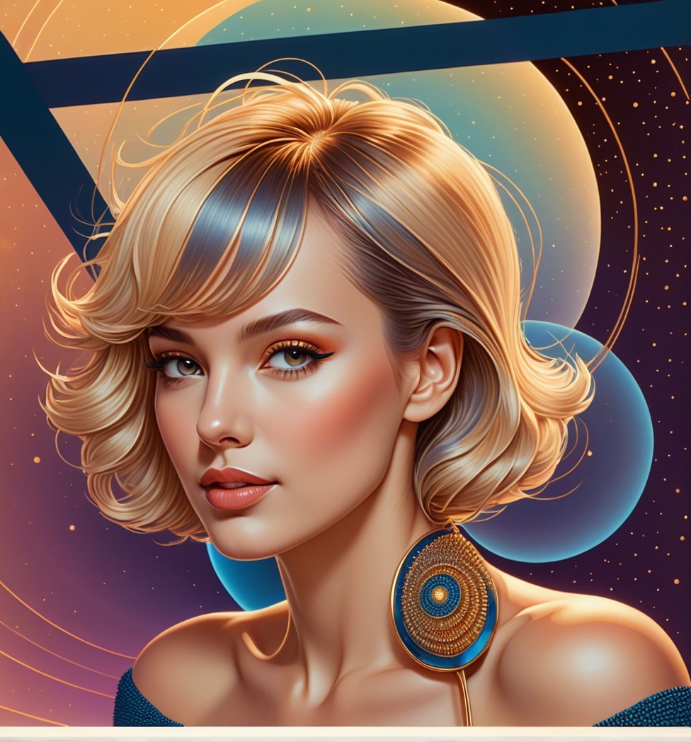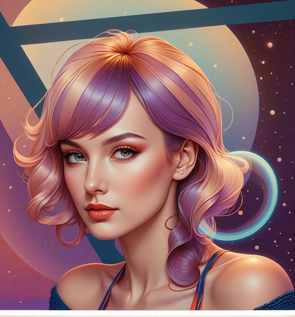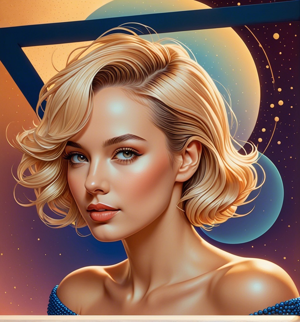 + Prompt:Vibrant surreal line-art, stylized portrait by Stan Lee, female upper body portrait, blowball motif, liminal, warm coloring, multi-layered, great depth and scale, tall and lean details, pointilism reference, fractal theme, triadic color scheme metallic-honey deep-blue light-beige, line-art by William Bradley, hues by Ho Baron and Ed Binkley, blurred, triadic color scheme light-blue goldenrut-yellow dark-blue, dappled rim lighting, smeary, surreal aesthetics by Ray Donley, interwoven textures, voluminous collagraphy print, reminiscent of coloring by Gerald Brom. 128K HDR, avant-garde artwork, strikingly colorful, brightness 1.3, zentangle, plasticity 1.1, emulsion shifts, dyed, trippy,high coloring, Man Ray's geometrical intricate lineage, swirls, cymatics, catenaries, organic forms, asymmetrical micro-pen lineage, line-art detailing, stippling, push processing technique, post-avantgarde style, fine-line illustration, natural color gradient inking, raytraced shadows, 3D effects, plasticity 1.3, subsurface scattering 1.6, pointillism theme, Ho Baron inspired, overflowing with visual density, trippy, warm-toned, very colorful, large-scale complexity, angled, colorful and detailed, surreal sketchbook art, tesselated, micro-level intricacy, plasticity 1.3, flecks, dots, rounded edges, warm toned, ethereal glow, reminiscent of comic book art, vibrant, magical atmosphere, linocut contourings, surrounded by flares, catenaries, iconic, industrial design, tesselated and encoustic hairstreaks, simplicity, resin, high coloring, asymmetrical & stylized hues, complex color scheme, mandelbrot fractals, quilling, vibrant color palette, fantastical, asymmetrical shapes & elements, surreal and dreamlike, surreal, dreamlike setting, intricate linework, octane render, digital painting. Rule of thirds, divisionism, radiance, balanced lighting.