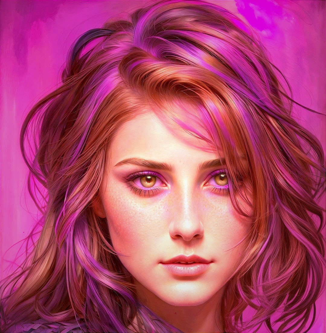 Expressionist portraiture, beautiful female enchantress, edwardian,detailed nose, paint stripes, powerful contrast, hues, High coloring pointillist portrait, close-up, stylized face, watery alcoholic painture and ink, back-lit, , triadic color scheme lilac beige purple, pink rim lighting, occult, strict, hazy, grunge, acid spill, encaustic strokes, dripping paint, style of paint dripping technique, wet on wet painting, octane render, ((3d effects 1.8, background in pink and purple realism, eye-catching detail, gothical,, chiaroscuro lighting), 6:11,triadic color scheme pink beige purple), subsurface scattering 1.7, ambient occlusion 1.5, shadow mapping 1.3, intricate stylized hairstyle, brightness 1.7, stylized zentangle lines, abstract, coherent, hues, eerie, occult, retropunk, creamy, sweaty, tribal, auracore, high coloring 1.9, mosscore 1.7, Anglocore 1.9, retrofuturistic details of ornate maximalism, radiance, brightness 1.4, silver particles, dreamy glow, brushed fine textures, very detailed abstract art nouveau illustration, Kinky Pop Surrealism, tints of comical sketch art by timlin, 3d effects 1.8, shadow mapping 1.3, dynamic lighting 1.7, ambient occlusion 1.5, anisotropic filtering 1.9, raytraced shadows, ethereal, otherworldly, abstract style 1.7, hues, grain, blurry aura, auracore, cottagegore 1.7, Anglocore 1.7, retrofuturistic details, spiritual essence,
