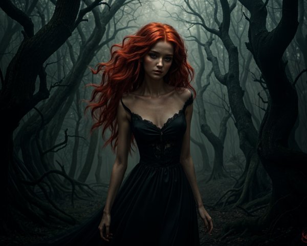 Young Woman with Red Hair in Cozy Bedroom Setting