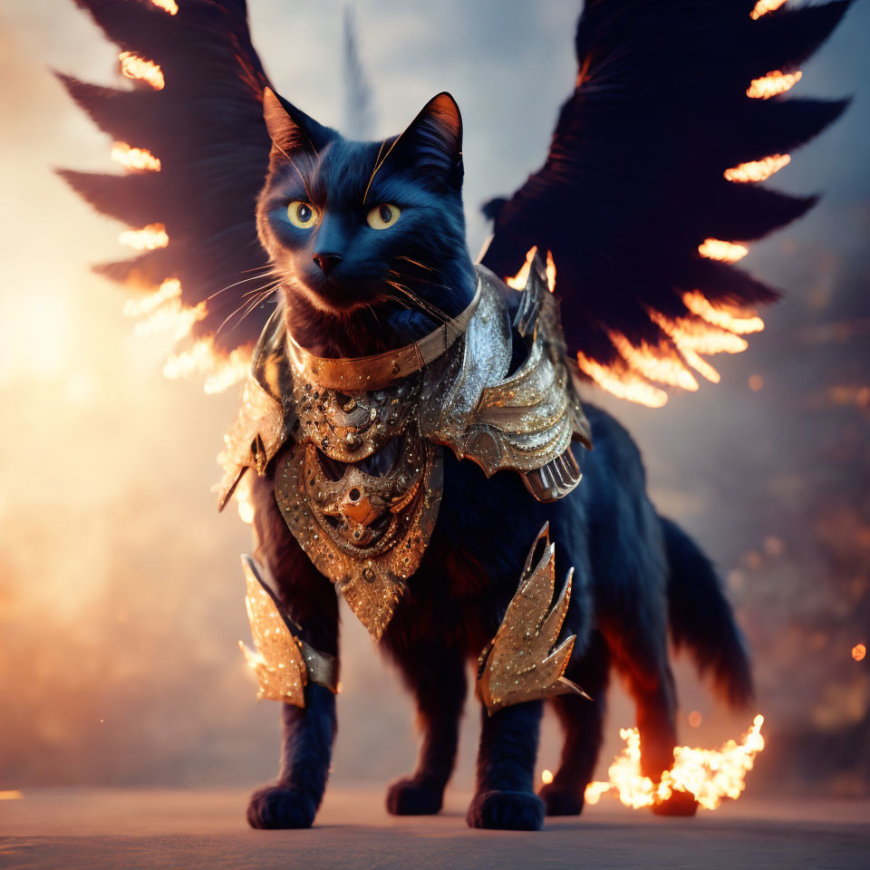 Prompt: full body of an elaborate furry rage maniac powerful biomechanics steampunk muscular anthropomorphic Cat warrior, large demon wings, majestic fierce armor, symmetry particles fire smoke background