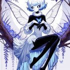 Whimsical Fairy with Butterfly Wings on Tree Branch