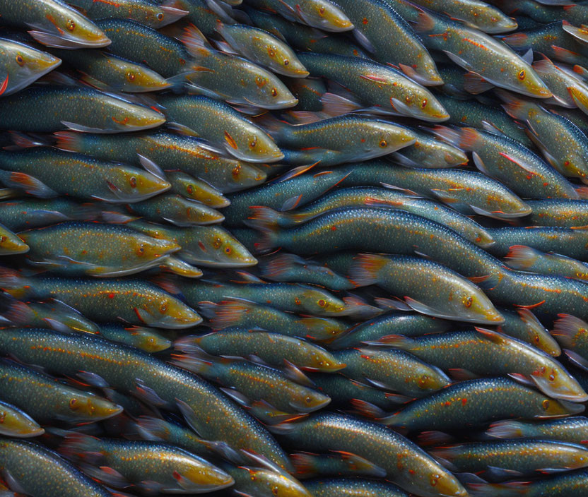 School of Silver Fish with Orange-Tipped Fins Swimming in Unison