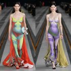 Prompt: A surreal, hyper-detailed vision of a diverse group of people walking together hand in hand, each transformed into cracked stone-like figures with sculptural textures. A punk with towering spiked hair and black leather radiates glitching shards of neon violet and cyan; beside them, a tattooed goth with intricate cybernetic patterns streams golden light across their cracked skin. A smiling woman in a flowing rainbow dress dissolves into radiant, prismatic beams; a hijabi figure glows softly with emerald and amethyst fractal light; an afro-haired woman emanates warm, fiery orange and red glitch trails like a living flame; a bearded man in a red jacket pulses with deep sapphire light; a tall man in a wide hat shimmers in electric turquoise. From each face and body, glitching pixel-sorted streaks of light burst outward, overlapping into a luminous rainbow storm. Behind them, the background swirls into a kaleidoscopic, rainbow-colored cosmic atmosphere — vibrant bands of light arcing across like shattered auroras, prismatic shards weaving with shadow. The overall feeling is unity through transcendence, digital chaos fused with harmony, cinematic and ultra-realistic, masterpiece.