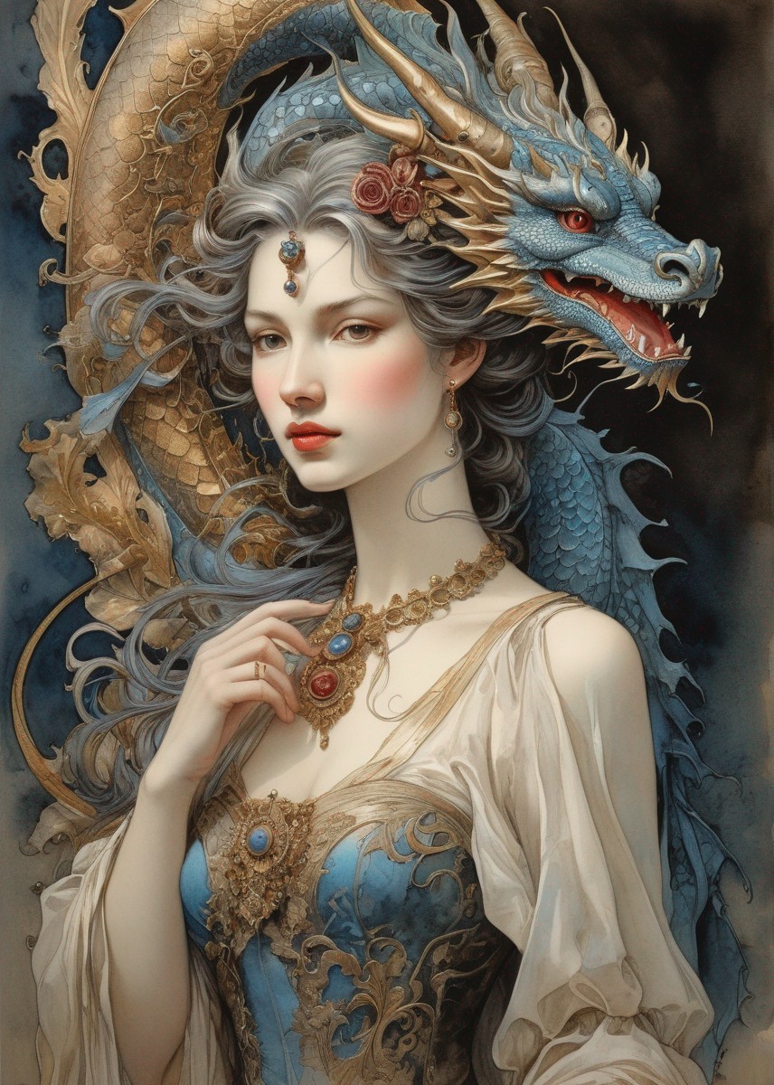 Prompt: Fantastic blue dragon.