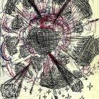 A vibrant cosmic explosion unfolds in space, with a central planet surrounded by debris and asteroids. Stars twinkle in the background, creating a dynamic scene of galactic chaos and beauty.
