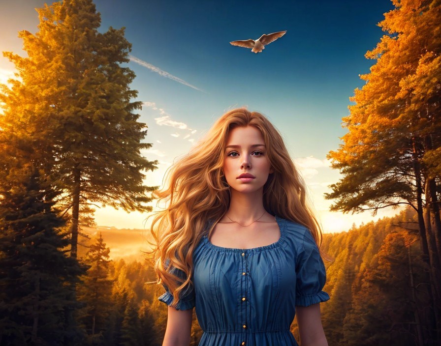 Prompt: "Quilted artwork of a little girl with blond reddish wavy hair in a blue cotton dress who is standing on the top of a tall grassy mound in the forest, she is ringing a huge golden bell placed way up in the sky, landscape mode, forestry, moody trees, mystical surroundings, panoramic view, little girl with blond reddish wavy hair in a blue cotton dress is standing on the top of a tall grassy mound, she is ringing a huge golden bell situated up in the blue beautiful sky, landscape mode, forestry, moody trees, mystical surrounding, very detailed, antique tapestry, embroidered quilt, highly detailed elegant intricate high detail ultra detailed 4K 3D high definition colorful Wildflowers trompe-l'œil illusionistic Zendangle Zendoodle"