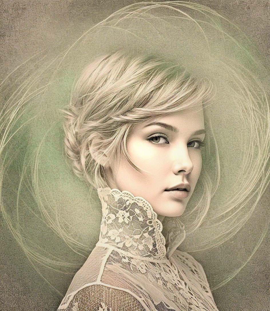 Prompt: Organic headshot, double exposure effect and intricate textures, drawing inspiration from the stylistic illustrations akin to Erica Hopper, colorful greenish gradient inking, blend of blurred and contoured elements. The viewpoint should be slightly angled, offering a top to bottom perspective, capturing a serene expression, gaze, blotted, UHD, HDR, dof, debeh, bokeh, quilling, dappled, plasticity 1.3, thrifting embodiment reminiscent of Edward Gorey and Vincent DiFate, colorful multi-layer rendering at the highest resolution. Triadic color scheme sea-green light-green yellow-green, embrace resilience and rigidity in the composition, playing with asymmetry and a Byzantine face type, captivating contrast by darkening the left side, enhancing the stylized hues with several gradient inking colors, intertwining gouache and watercolor for a unique effect, feminine headshot featuring a vibrant and tousled hairdo, creating an illusion of flowing hair with 3D effects reminiscent of Brock Hofer. Opt for a plasticity of 1.8, incorporating dappled, opaque layers with multi-layered eyes that hold a distinctive gaze.