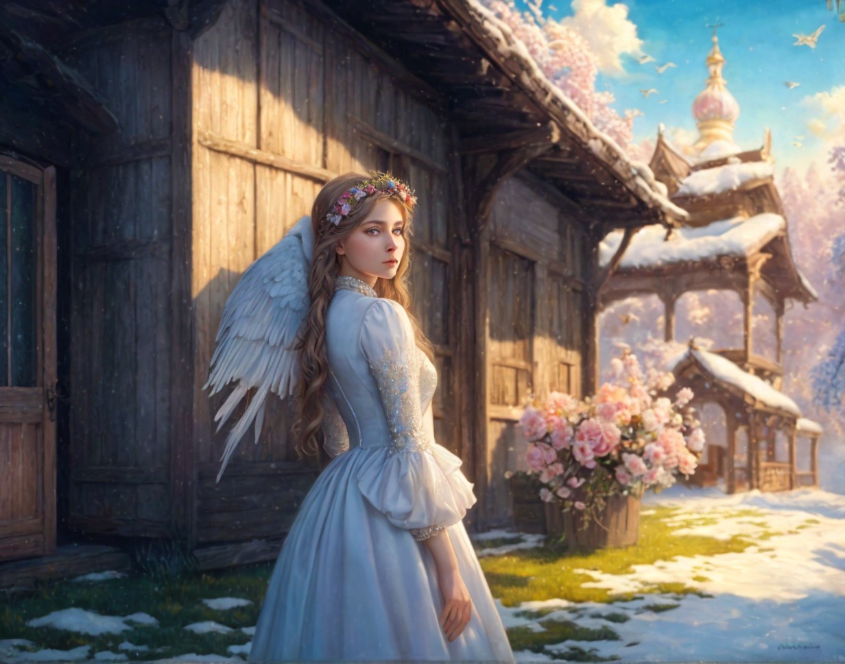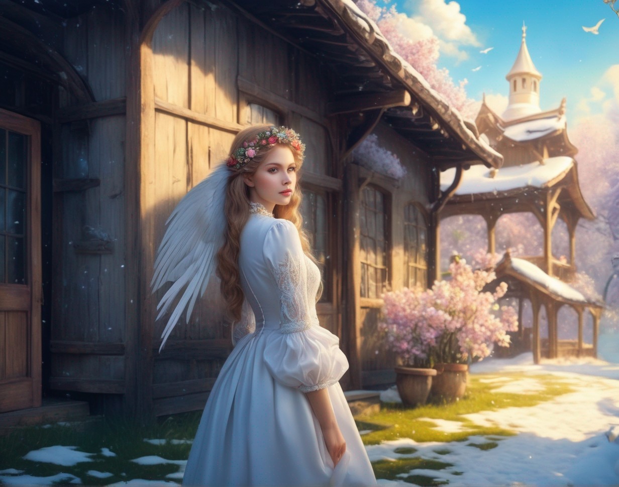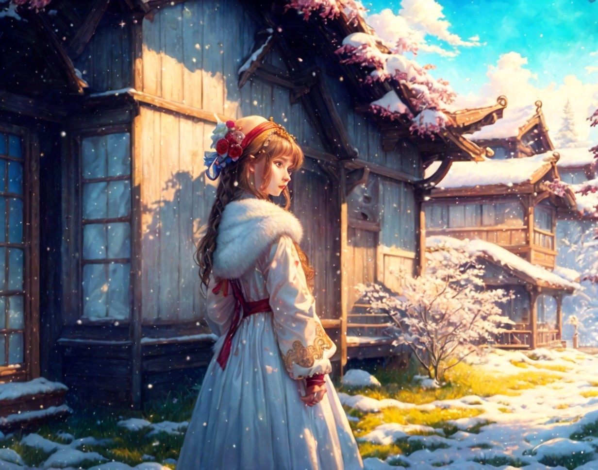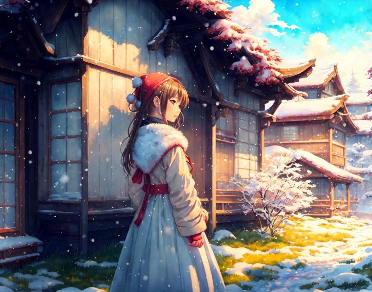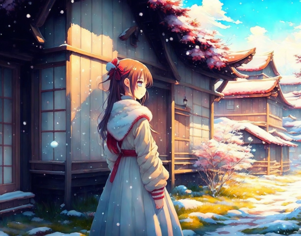 Prompt: "olpntng style, Anime girl Pretty in watercolor japan village, by DKCW, landscape, snow background, smooth light, oil painting, heavy strokes, paint dripping, oil painting, heavy strokes, paint dripping"
