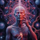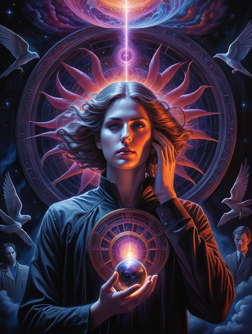 Mystical Woman with Glowing Orb and Cosmic Elements
