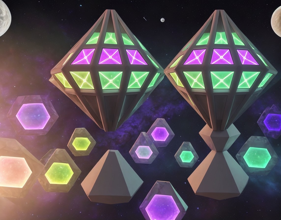 Prompt: High-tech drug laboratory assimilated with arcane sacred geometric patterns and advanced alien technology. glowing runes and alien glyphs. geometric patterns, hexagonal patterns. Beakers, flasks and other glassware for chemistry. The sun, moon, and planets amongst billowing clouds of nebula in the sky. Ultra Realistic landscape under a complex cosmic sky. Enigmatic astral projection/alien contact, galactic LSD art, surreal psychedelic vibes, sci-fi LSD art. In the style of Cameron Gray