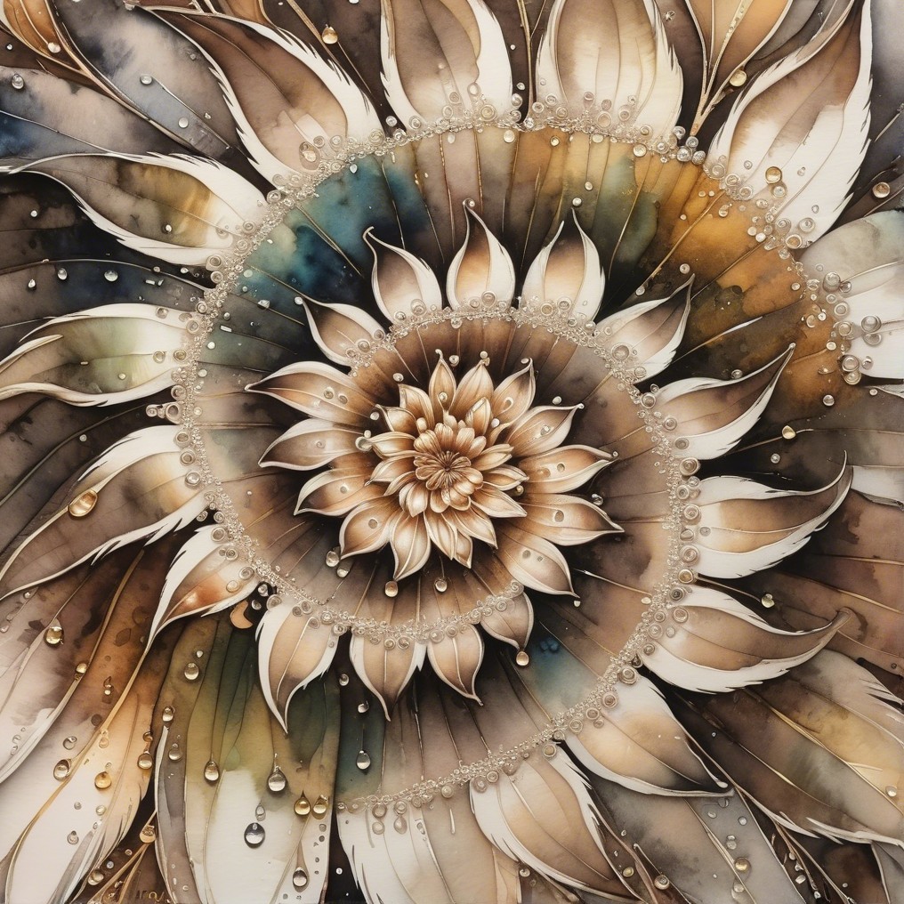 + Prompt:Fantasy bird with long tailfeathers, intricately detailed, Watercolors on Wet Paper, Alcohol Ink, dew Drops with intricate details in the style of artists.