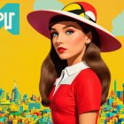 A stylized illustration of a girl with brown hair and blue eyes, wearing a red shirt and a wide-brimmed hat, set against a colorful urban backdrop, with "VOLT" prominently displayed above.