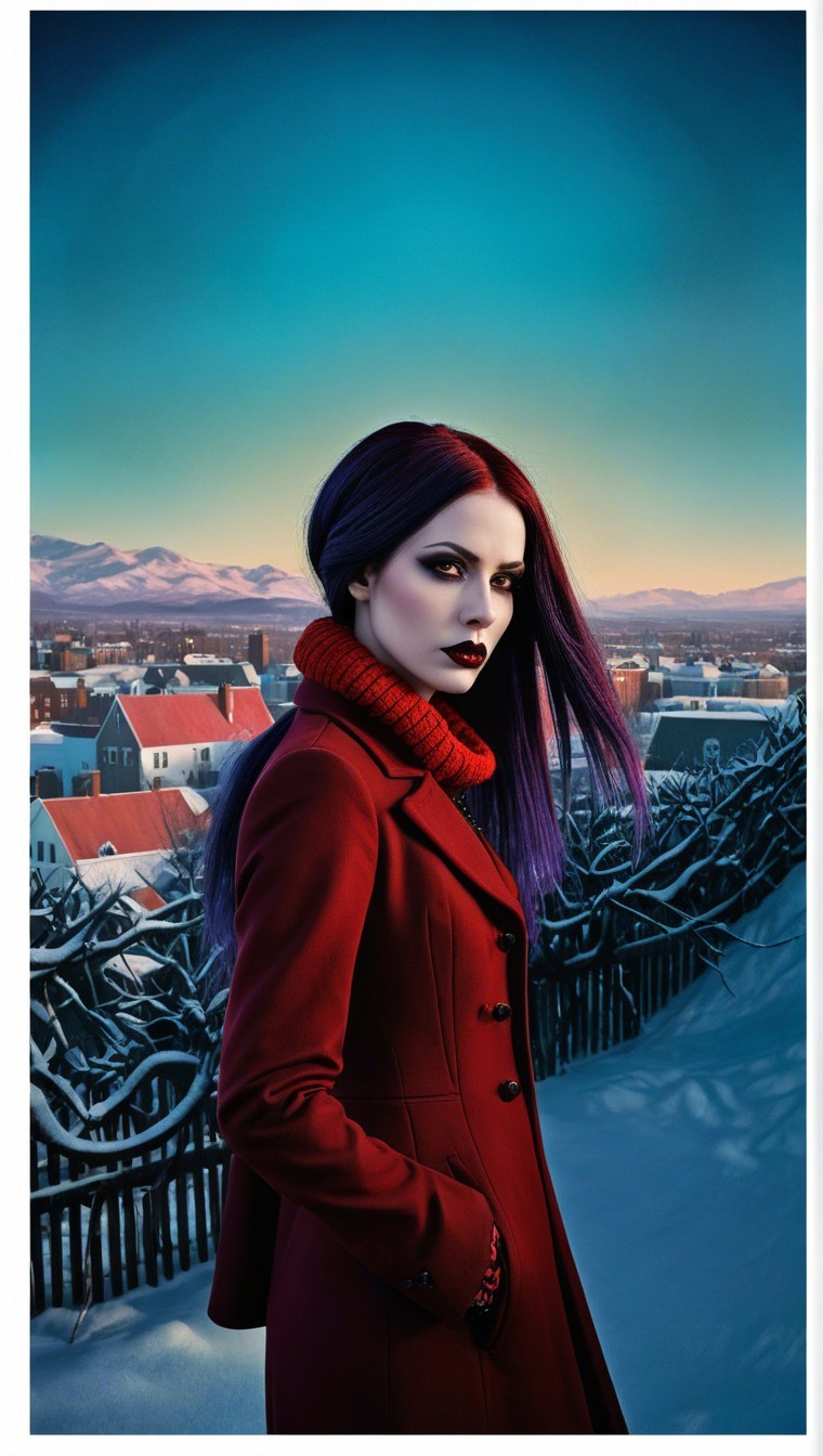dark gothical 3/4 body portraiture by Alex Raymond, foampunk merged with dark fantasy style, terrible, atrocious, hideous, grimly, bloodcurdling, harrowing, serene, stylized, intricate, balanced coloring, very smooth complexion, highly detailed, subtle, stylized details against a geometrical backdrop reminiscent of American Gothic merged with comic book art. Maximalism, rule of thirds. Plasticity 1.3, ambient occlusion 1.3, parallax occlusion 1.3, raytraced shadows 1.3, the dystopian artwork showcases dynamic lighting and casted shadows for depth, while parallax occlusion enhances the three-dimensional effect, geometrical styles with elements of foampunk, detailed line art, patterned reminiscent of Paul Kidby. The color palette is a vivid mix of pastel tones, with metallic sparkling effects and warm coloring to create a whimsical and psychedelic ambiance, traumacore with hatching details and a soft, ethereal atmosphere. The piece exudes sensuality and depth, drawing inspiration from VFX techniques and luminous storytelling akin to Arlie Opal, high-quality digital painting with a focus on fantasy elements and precise execution.Stackeed lines, line-art, zentangle. Colored ink. The art style blends elements influenced by Stan Lee and Ho Baron and Man Ray with a triadic color scheme of pale blue, orange-red, warm beige. nightmarish, stark, emptied. Eldritch, gothic decay and Lovecraftian nostalgia, magical realism, daplled lighting, estranged metallic coloring, Mercury Glass patina, cinewash, reminiscent of steampunk, dyed hair, juvenile, Outlier drawing, encaustic, Bloom-Effect, overexposed, overspray of paint. Cel-shaded, white wash, subtle coloring, acidic textures light and gossamer haze, Art nouveau, moody, somberm style of Man Ray, acid wash, continuous line drawing, 1970 film noir movie still, contouring outlines and hues by stan lee,airbrush art style in background, cinematic, painterly, only curves, sawtooth wave, negative lucas numbers, precise Gelsculpt