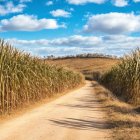 A dramatic urban scene features a bustling city skyline with towering skyscrapers. Flames erupt along the street, creating a stark contrast against a blue sky and vibrant architecture.