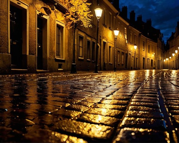 A serene, lush forest scene features tall trees with vibrant green foliage and a winding dirt path. Gentle rain adds a tranquil ambiance, while wildflowers bloom in the grassy undergrowth.