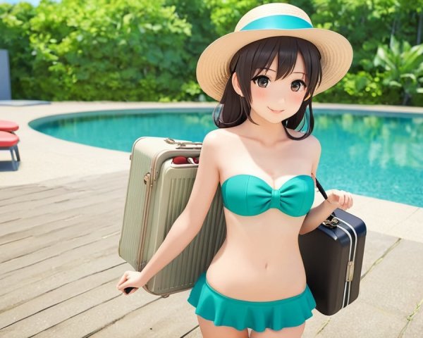 A cheerful anime girl with bright eyes and a playful smile holds a freshly baked pecan pie, adorned with golden crust and glistening nuts. The warm kitchen setting adds a cozy charm to the scene.