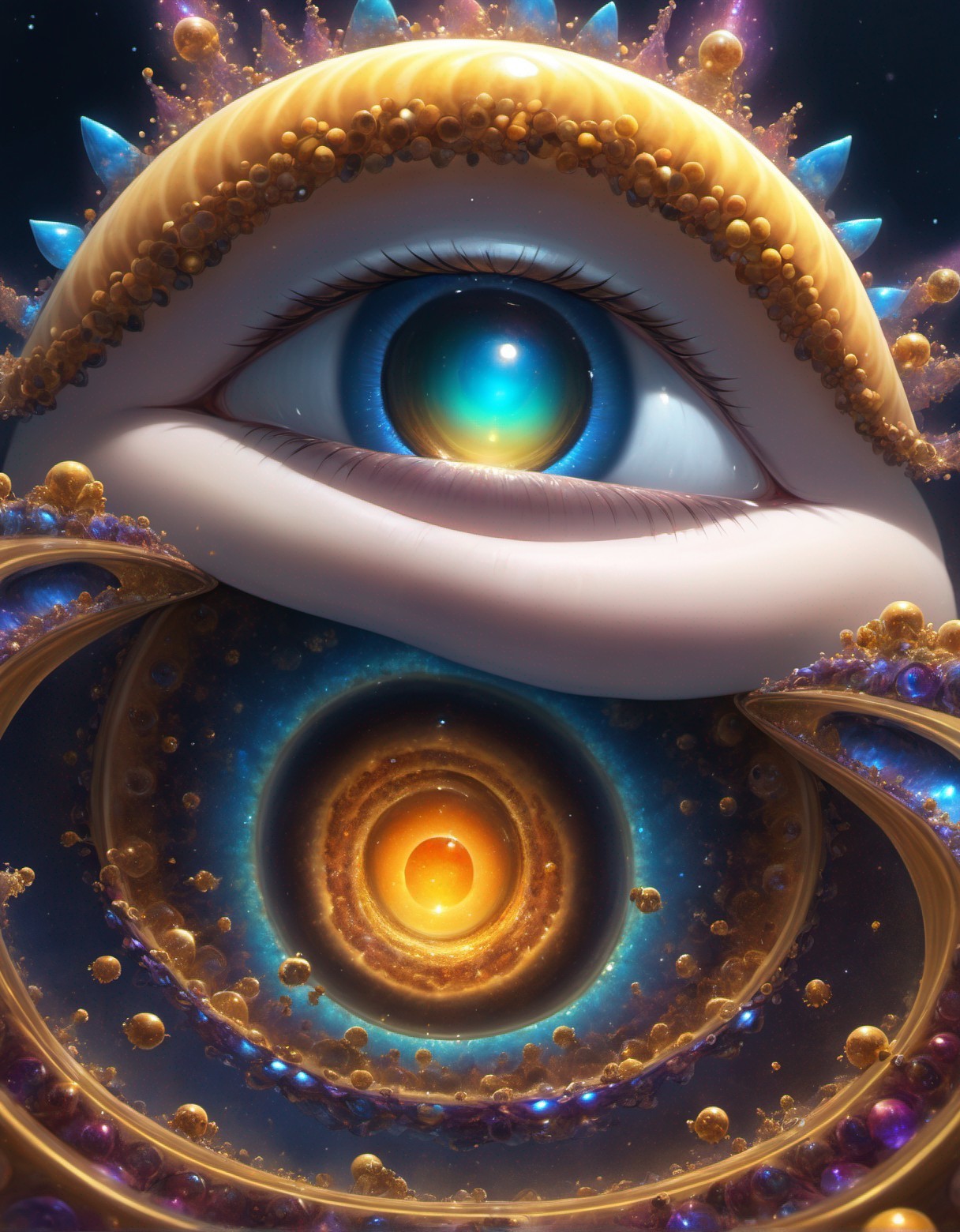 + Prompt:(start from a single point and incrementally grow an ebullient organically inorganic creature composed of highly-probable impossibilities predicated on the reality of quantum erasure and unlimited parallel realities) - resulting in covertly depressed lone independent hive (hedonauts jumping in jubilation) - as (a rhythmic wave function of love and ambivalence pours over the particle duality of light lunches on the riviera) - extolling decadently humble origins of sensate numbness creeping upward as (octopi return to their mountainous spawning pools by volcanic suboceanic vents covered in Koch crystalline madness)