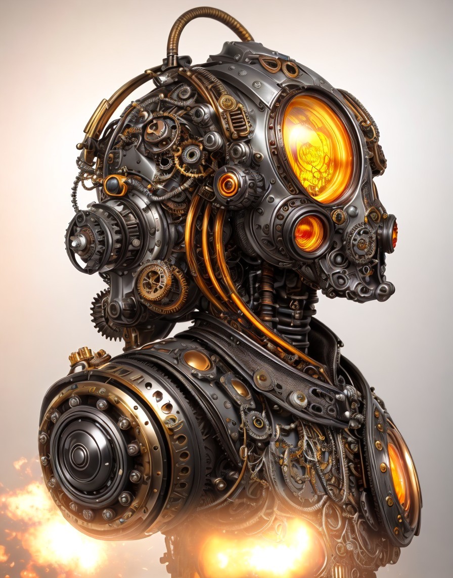 Steampunk beautiful witch, headshot Portrait, detailed cyberpunk background, stylized rococo details, realistic ornamental mechanical glossy details, ominous,  mythical cuteness, dark fantasy art, triadic color scheme gold grey ochre, amber lighting 1.25, detailed mechanical fittings, psychedelic iridescence, intricate colorful plasticity, vector 9:7, gothic horror, anatomical accuracy,  biomechanical details, Fantasy movie still, beautiful female face, (orange cyberpunk background, volumetric lighting, triadic color scheme orange beige black, (iridescent fractal accents) 6:5), fine streaks of white electrical lightning, hyperdetailed steampunk illustration, (intricate steampunk background of boilers, clocks, (grisaille with golden orange and chromium devices, tubes, gilded brass, copper ornamental details, grunge horror (0.9), glossy highlighted reflections 8:5),vector 9:7), hues, cyborg details, cyborg features, devilish eyes, volumetric plushy lighting, tints of 1970s fantasy art, fauvistic style, heroism, highly detailed ornamental features, anatomically detailed, orange rim lighting, highly detailed strokes, retrofuturistic features, cybernetic ornamental backdrop, (tints of 1970s advertising art, (tints of steampunk, enki bilal, barbara canepa, William timlin), 7:4), hyperdetailed , maximalism, hues, plasticity, realistic detailed beauty, luminous iridescence, linear perspective, brushed metal texture, mist, iridescent fractal accents,  plasticity