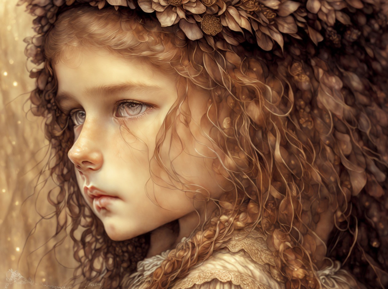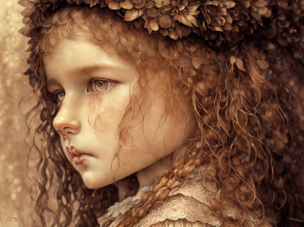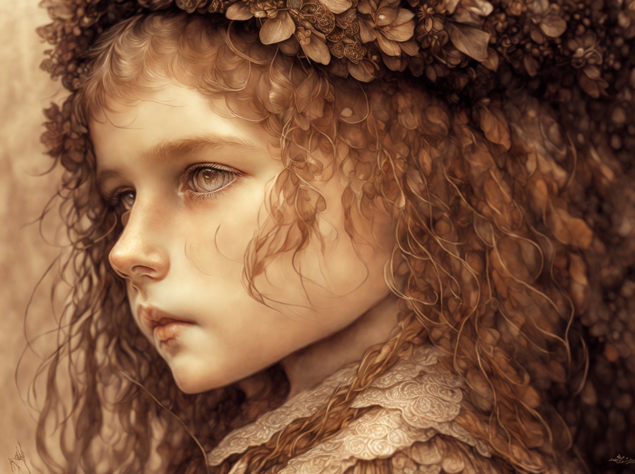 Prompt: An earthy tones line sketch portrait, beautiful face of a young French girl, big brown sparkling eyes, slight smile, fantasy clothes, messy hairstyle, intricate details and precisely drawn cross-hatching lines throughout the drawing, bold lines