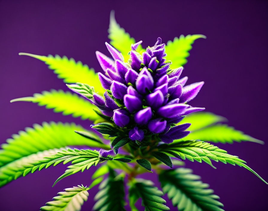 Detailed Close-Up of Purple Cannabis Plant with Blurred Background