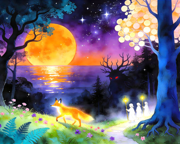 A woman in a stylish hat gazes thoughtfully, her luxurious blonde hair cascading over a black dress. A vase of red roses and a plate of apples sit elegantly nearby, enhancing the scene's elegance.