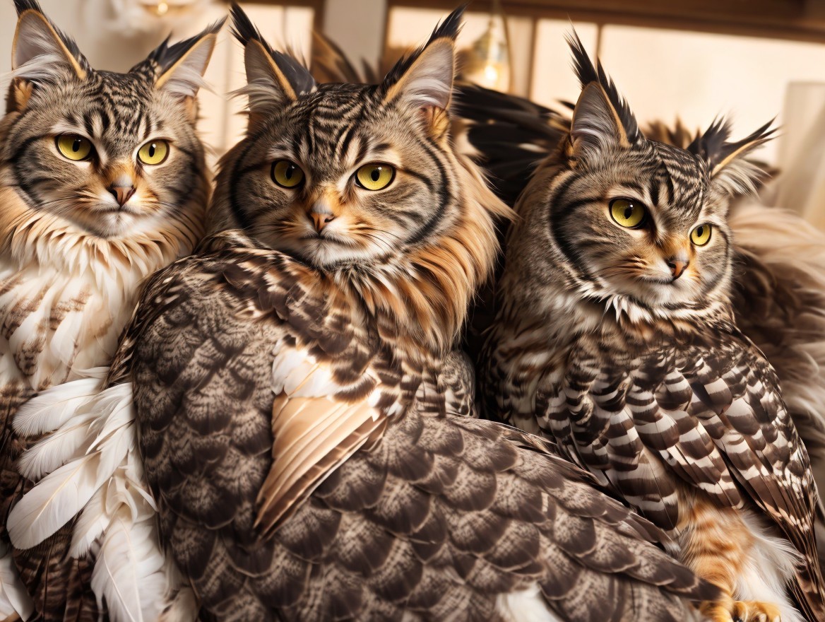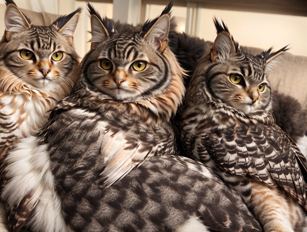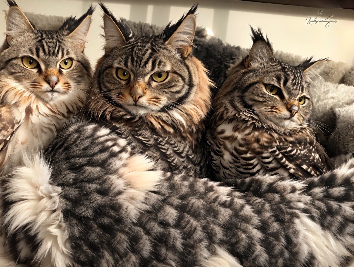 Base photo shows Seaqui looking like a Great Horned Owl. The AI turned the pic into THREE owls!