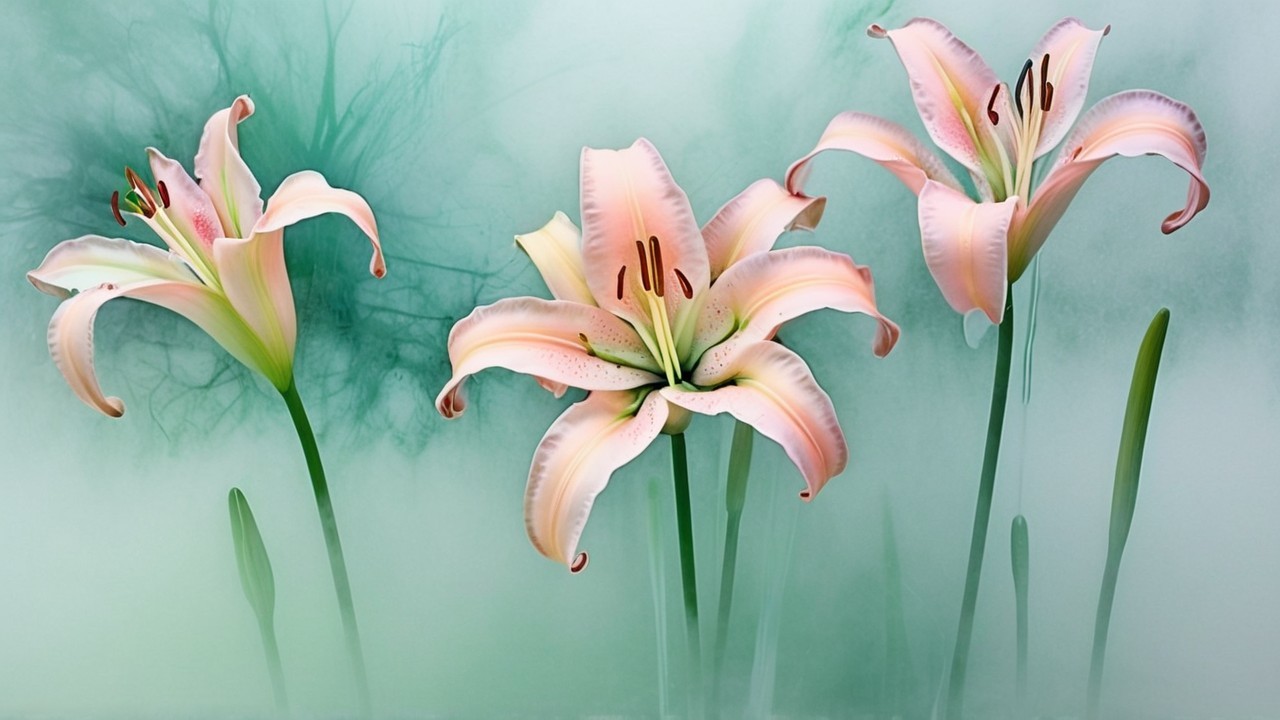 A vibrant watercolor painting features a lush garden of blooming flowers in shades of red and yellow, surrounded by swirls of green and soft blue, capturing a serene and joyful atmosphere.
