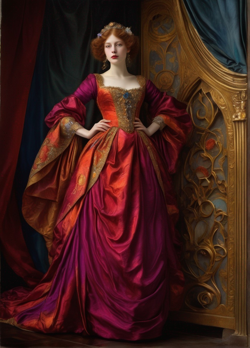 Prompt: Single image. Venetian Art nouveau. The quantum nature of things. A Venetian carnivore. colors: silk iridescent texture in watercolor and ink, vibrant colors with gold foil detail metallic bronze, saffron, indigo, gold