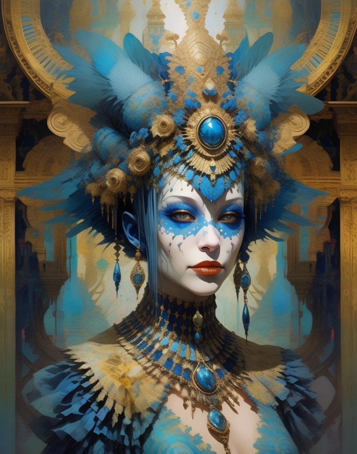 rare strange::4 Egyptian::3 rococo::3 cybergoth::4 portrait in a rorschach inkblot::3 environment, oil painted::5 , amphibian, surreal::3 , abstract, blue and rose tones::7 photorealistic::5 , depth, high quality, best resolution, DOF, 5D, , Ray Tracing Global Illumination, Optics, Materiality, Ambient Occlusion, Scattering, Glowing, Shadows, Rough, Shimmering, Ray Tracing Reflections, Chromatic Aberration, CGI, VFX, SFX, elegant