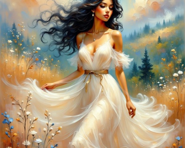 A glamorous young woman stands in rain, her wet hair cascading down. She wears elegant earrings and a necklace, with a radiant glow on her skin, exuding beauty and confidence.