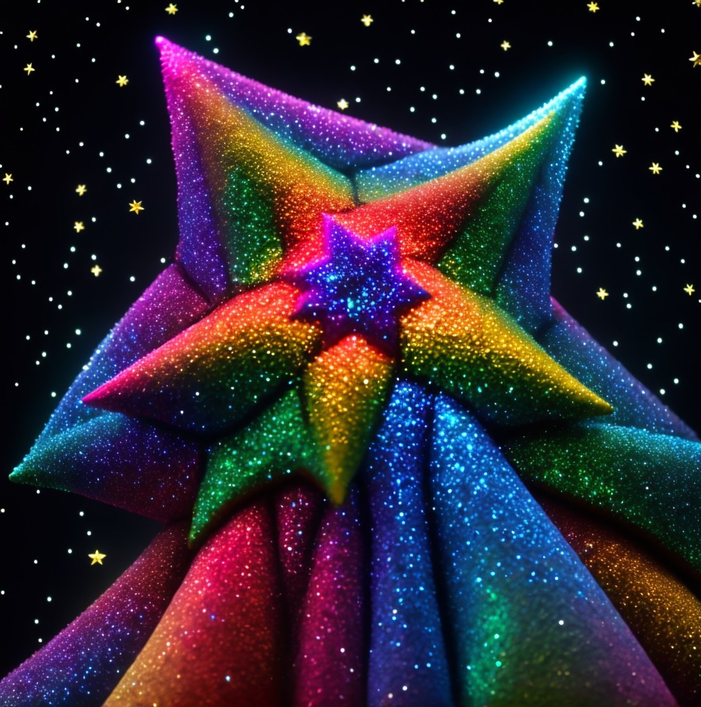 Vibrant glittery star shapes on dark cosmic background
