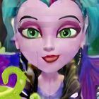 The image features a vibrant, stylized doll with striking green eyes, purple skin, and colorful hair. Adorned with intricate accessories, her outfit is edgy and decorated with sea-themed elements.