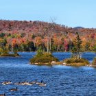 Autumn Lake Surrounded by Colorful Foliage and Hills