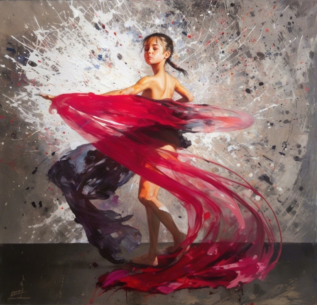 Prompt: My soul is dancing in this torturous slumber, Oil Speed Painting on Canvas, Textured Brush strokes with Paint Splatter, Matte Background; By Jeremy Mann, Bernie Wrightson, Frank Frazetta, Yoji Shingawa; Masterpiece