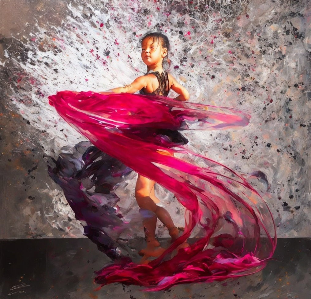 My soul is dancing in this torturous slumber, Oil Speed Painting on Canvas, Textured Brush strokes with Paint Splatter, Matte Background; By Jeremy Mann, Bernie Wrightson, Frank Frazetta, Yoji Shingawa; Masterpiece