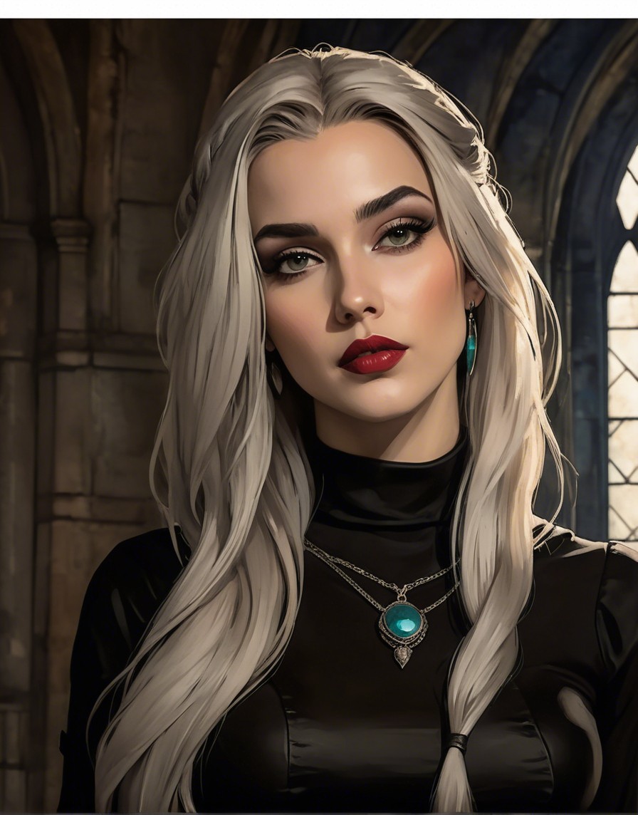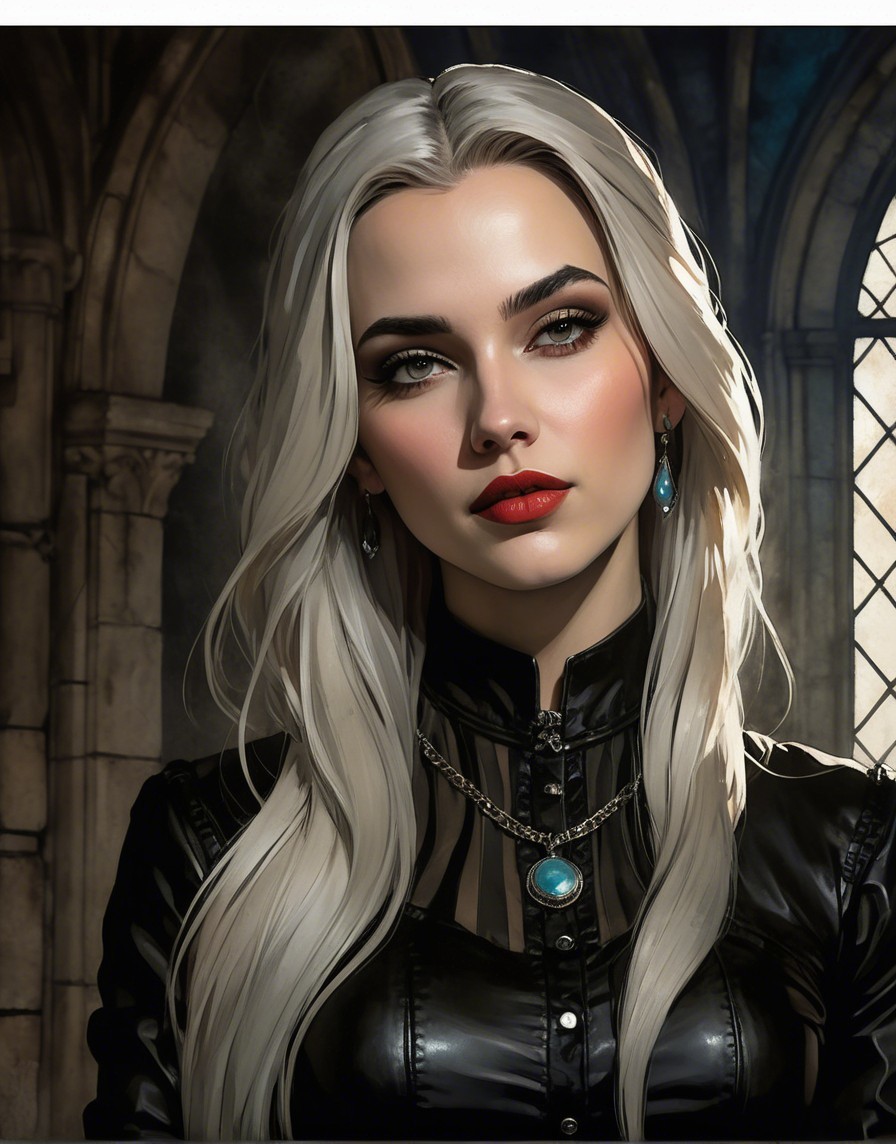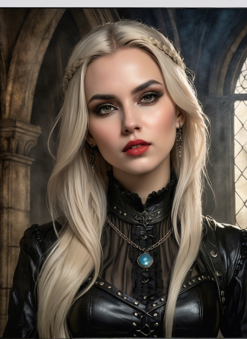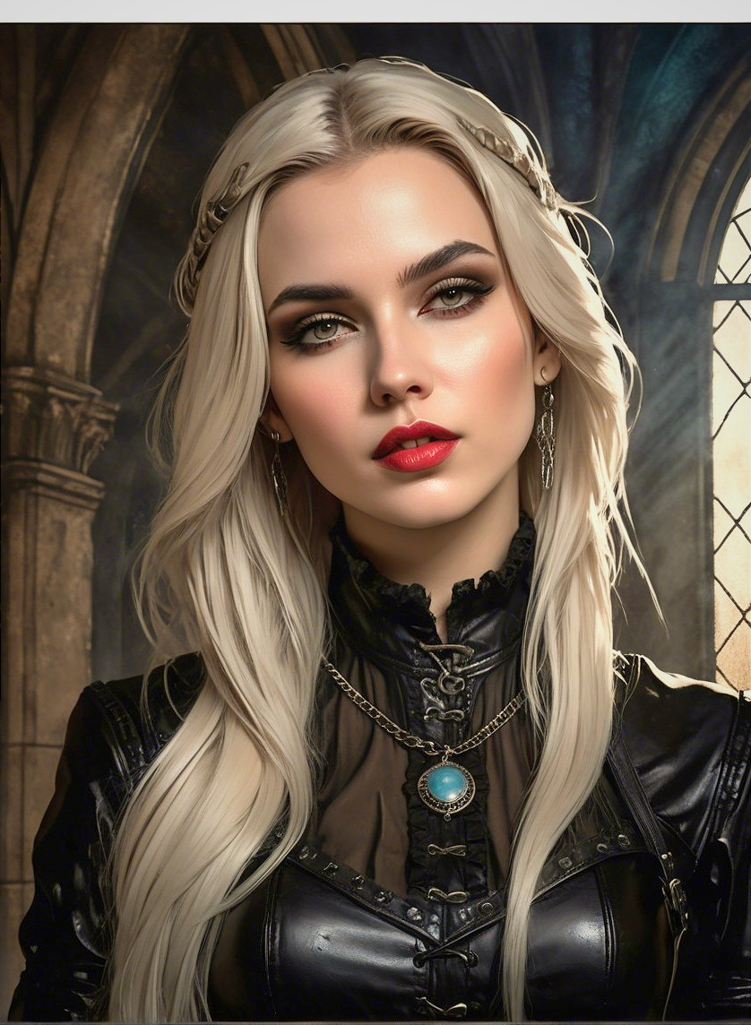 Prompt: Portraiture of beautiful female enchantress, waterrcolor and ink background with stone textures, dark fantasy art merged with grunge, coherent, concept art, luminous, rim lighting 1.7, sculpted, dethereal, 3 layers of dof, lacquer details, leather, frilly, crackles, hdr,baroque, divisionism, serene, gothical details, american gothic 1.9, Novelty architecture, retrofuturistic garment, stylized marvel comics art, patchwork in the style of Raymond Briggs, overton Loyd, William Bradley, Randolph Caldecott, fantasy art by Anna Dittman, hdr, pen and ink style, subtle coloring, romantic abstraction, Diffused misty background, 1970s fantasy artwork, 3d effects by Brooke shaden, anisotropic filtering 1.7, dynamic lighting 1.7, colored line drawing merged with pen and ink style, shabby chic, modern, back-lit, pop art reminiscence, contouring lines by Brooke shaden, streamline_moderne, dark fantasy, blended styles of Didier graffet and Overton Loyd and Brad Kunkle, triadic color scheme ochre beige brown, Figurative, synthetic, sculpted, retropunk, overall composition by Andy Russell and Overton Loyd and Juan brutal, rim lighting, sprayed paint details, close-up portrait, fantasy movie still, uhd, hdr, octane render, traumacore 1.9, ambient occlusion 1.5, raytraced shadows 1.8, interplay of darkness and light, visible brushstrokes and ink lineage, contouring outlines by Georgia o'keffee, brightness 1.9, stylized artwork, fantastical atmosphere, dynamic lighting 1.2, raytraced shadows 1.2 ,plasticity 1.3, complexion 1.1, overall composition by John Lowrie Morrison and Andy Russell,